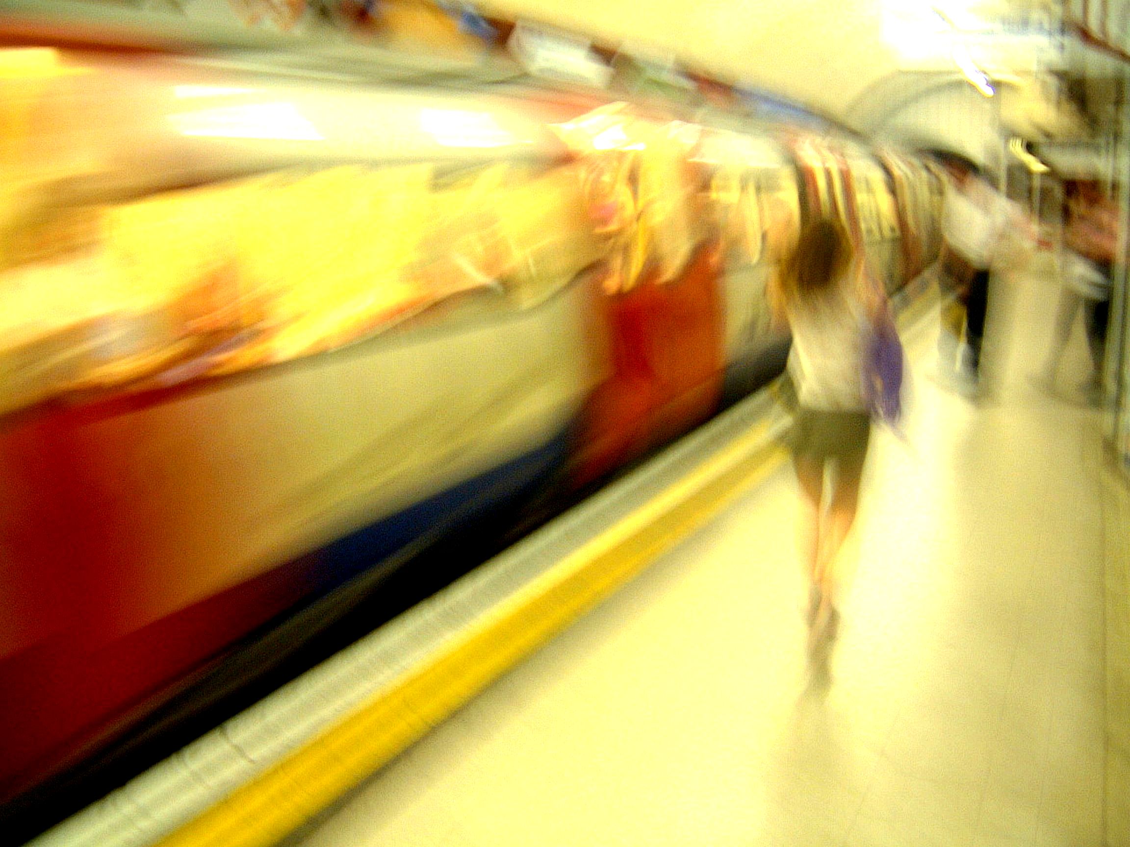 She walked past me. I was about to take the photograph when the train began to pull away. I didn’t want her to be out of range, an empty platform or to use zoom so I took the shot.