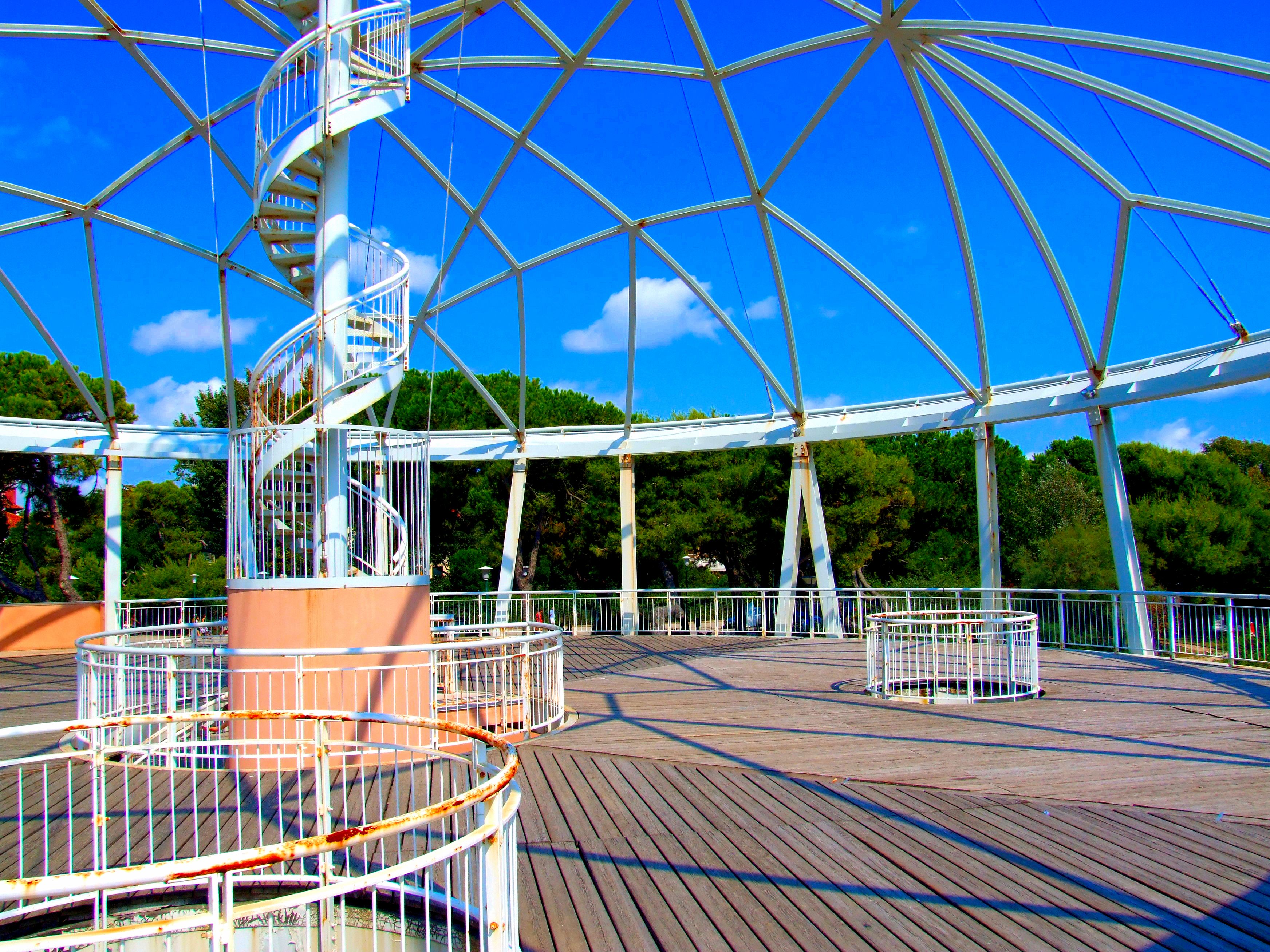Shadow triangles move slowly across the wooden decking as the sun moves across the sky.
