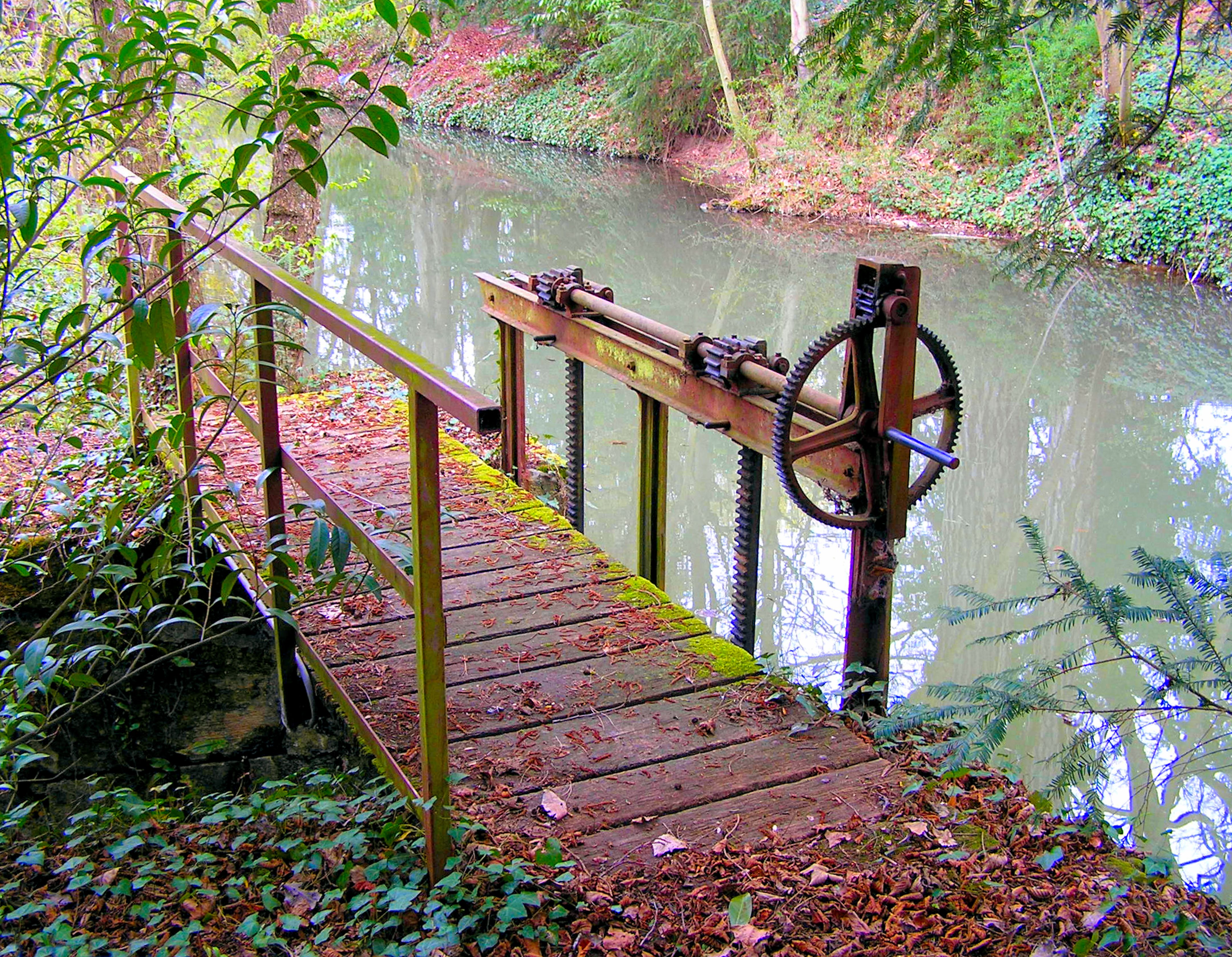 This gear system waterwheel and toothed lifting device, based on a design by Leonardo da Vinci, stands in the grounds of his final home, the Château du Clos Lucé, 2 Rue du Clos Lucé, 37400 Amboise, France. In 1965, two lost manuscripts written by Leonardo da Vinci (The Madrid Codices I-II) were discovered in the Biblioteca Nacional de España in Madrid by Dr. Jules Piccus, Language Professor at the University of Massachusetts. Leonardo da Vinci had completed volume I between 1490 and 1499 and volume II between 1503 and 1505. In the first volume, he introduced and dealt scientifically with the idea of transmission by means of toothed gears. His findings are the basis for the gear system in every machine, past or present, that relies upon a gear system.